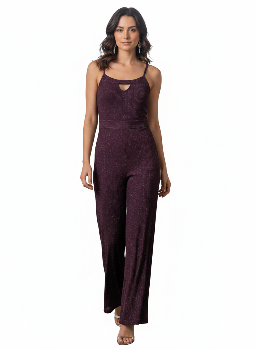 Shimmer Knit Wide-Leg Jumpsuit Elevate your evening wardrobe with this stunning...