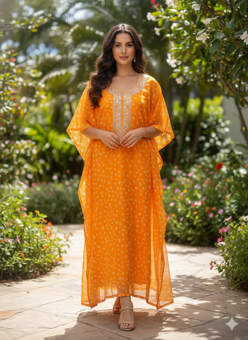 The Amber Aria Kaftan Radiate effortless elegance in this vibrant, sun-drenched ...