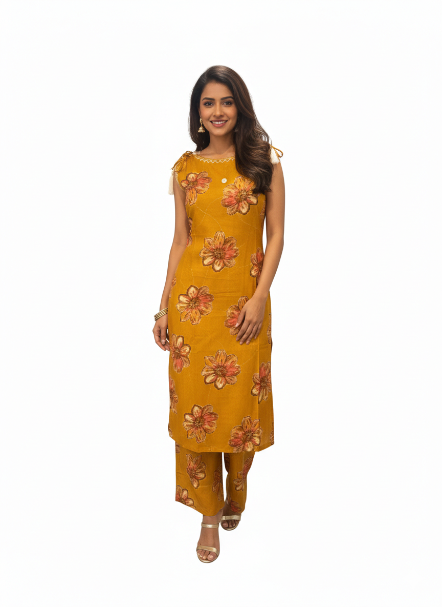 Desert Marigold Co-ord Set Radiate warmth in this mustard-hued two-piece set, fe...