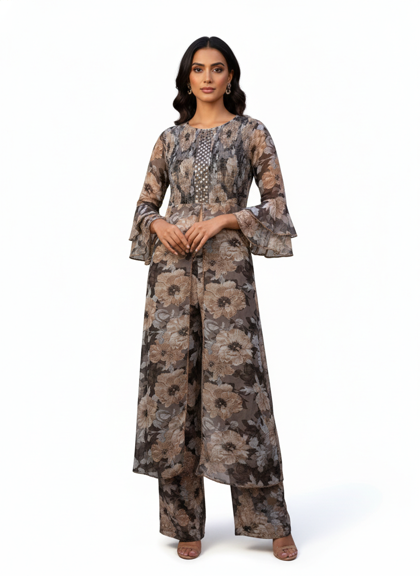 Indo-Western wear is a stylish fusion of traditional Indian aesthetics and modern Western silhouettes. It blends rich fabrics, ethnic prints, and classic details with contemporary cuts, making it perfect for both everyday wear and special occasions. Designed for comfort and versatility, Indo-Western outfits offer an elegant yet modern look that effortlessly bridges tradition and trend.