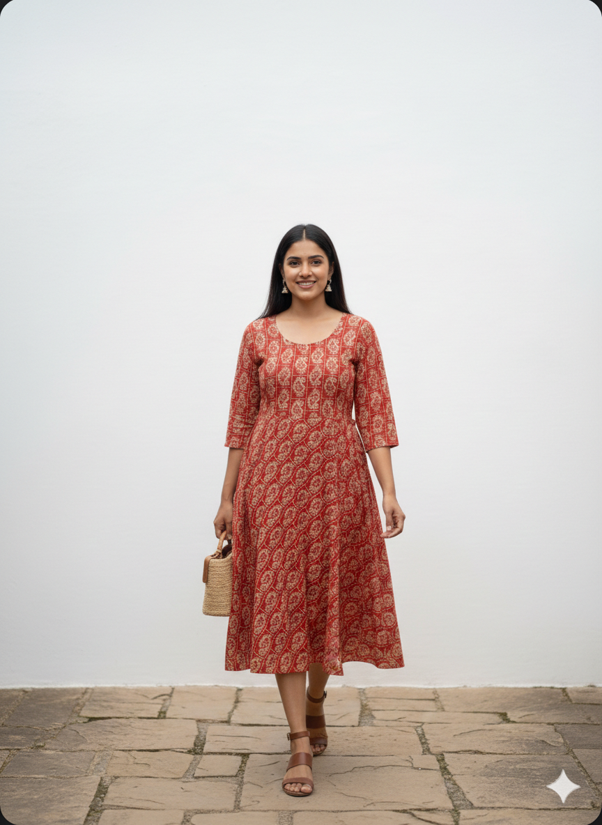A soulful blend of traditional block-print aesthetics and a contemporary flared ...